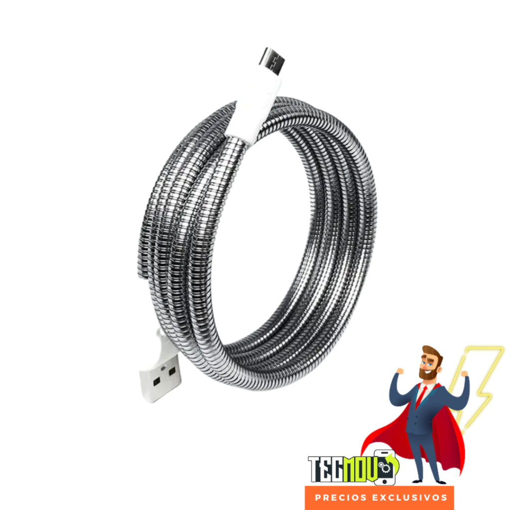 cable USB a Micro USB con capacidad de carga rápida de 3.1A y transferencia de datos. Tiene un metro de longitud aproximada.